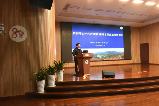 兰思仁校长为研讨会致辞,并作了《金宝搏app登录入口全面助推新一轮水土流失治理工作情况介绍》;福建省水利厅林捷总工程师、台湾屏东科技大学李锦育教授、长汀县委副书记李强分别为研讨会作《贯彻落实十九大精神 推进水保生态文明建设》、《生态文明建设与水土保持》、《生态文明建设的“长汀经验”》的专题报告。