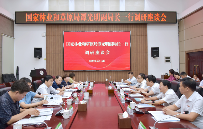 6月16日下午,国家林业和草原局党组成员、副局长谭光明带领国际司司长夏军,人事司司长李金华,驻福州专员办党组书记、专员孟广芹,草原司副司长宋中山,科技司二级巡视员宋红竹等来校调研。省林业局党组书记、局长王智桢,我校校长兰思仁、校党委副书记陈世奎、副校长郑宝东陪同调研。