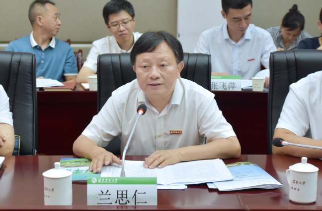 兰思仁代表学校对谭光明一行的到来表示热烈欢迎,衷心感谢国家林业和草原局长期以来对学校的关心支持,并简要介绍了局省合作以来学校事业发展以及学校服务林草事业发展的主要成效,希望国家林业和草原局在第一轮局省共建取得良好成效的基础上,支持加快实施新一轮局省共建设工作,支持加快推进菌草科学与技术体系建设和林草种业、国家公园、碳中和等重大科技攻关,支持全面深化集体林业改革发展理论研究,助力学校“双一流”建设。