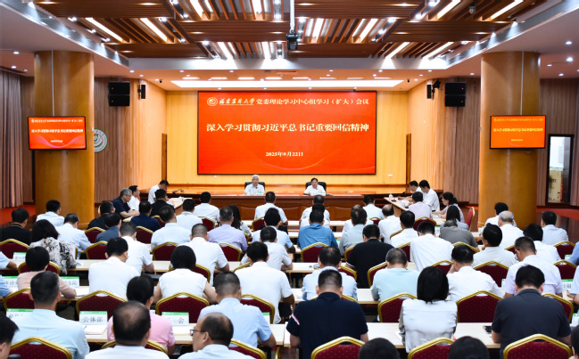 9月22日下午,校党委理论学习中心组学习(扩大)会议在福州仓山校区常盛会议中心召开。会议深入学习领会、全面贯彻落实习近平总书记给我校全体师生的重要回信精神,在深学细悟笃行中汲取思想伟力,把拳拳之心熔铸进强国建设、民族复兴的伟大事业。校党委书记赖海榕主持会议并讲话。校长兰思仁,校党委副书记陈世奎、曾华平,副校长郑宝东、林庆藩、唐振鹏,校纪委书记陈艳分别作交流发言。